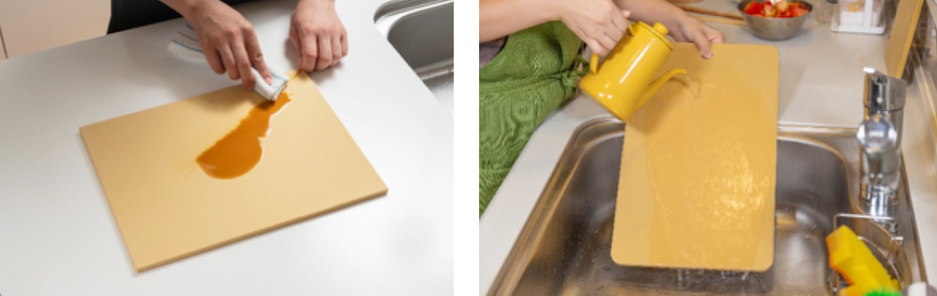 ・使用後は出来るだけ早く布巾、またはスポンジに食器用洗剤をつけて良く洗い、水気を拭き取ってから乾かして収納してください。