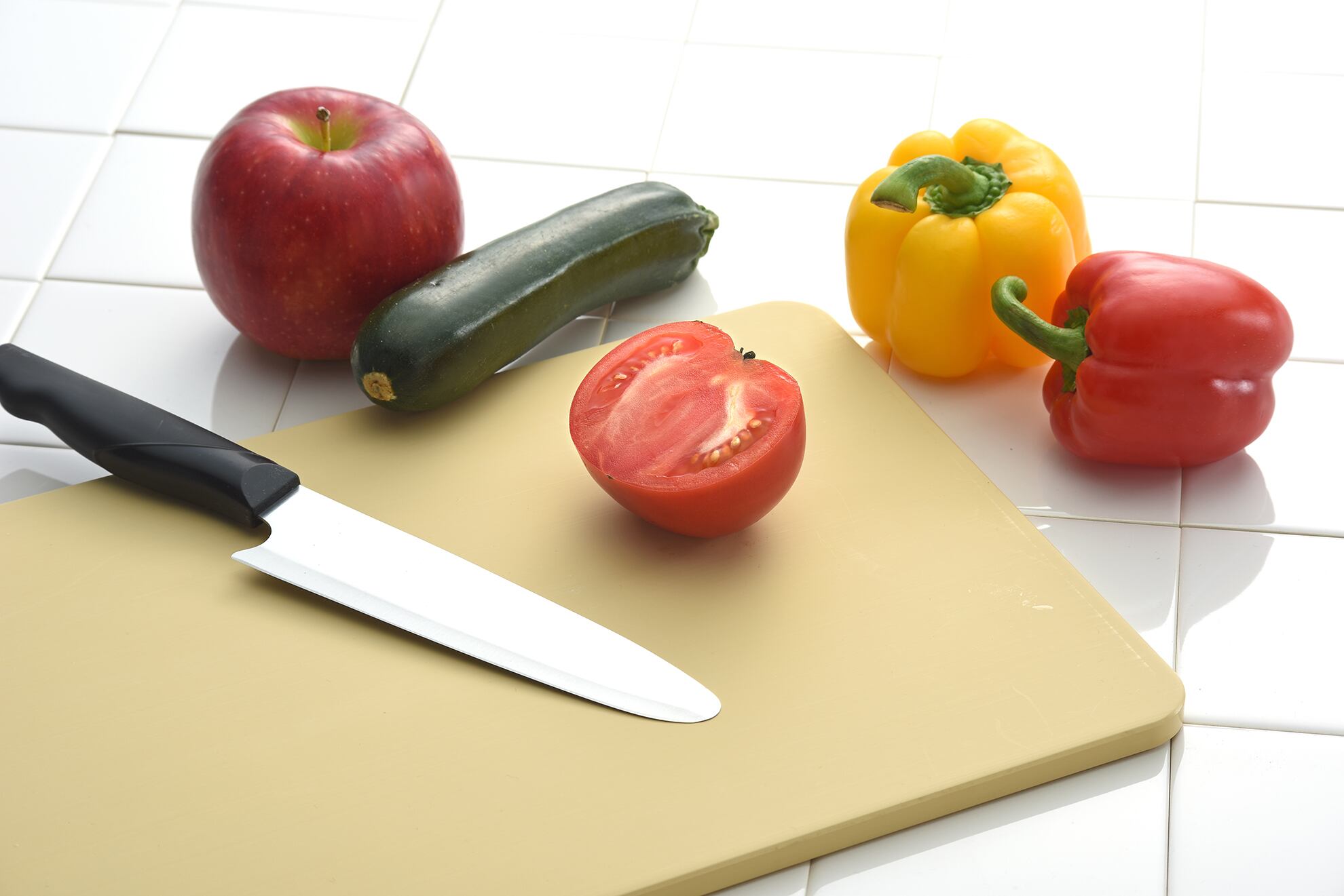 サイズ:約413×253×10㎜ 重量:約1260g 素材:合成ゴム 色調:ベージュ 色耐冷熱温度:-30℃~130℃ 生産国:日本製(福岡県うきは市) ■ 特徴 傷が付きにくく食材カスが詰まりにくい合成ゴムまな板です。柔らかな刃当たりで手首が楽で刃も長持ち。見やすいベージュ色、適度な重みで安定し滑りにくく安全です。