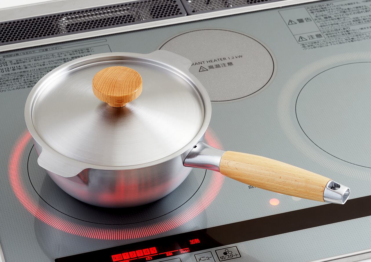 アイカタ 両口ステンレス雪平鍋は、昔ながらの雪平鍋の形状に、ステンレスならではの耐久性と清潔さを加えた万能鍋です。